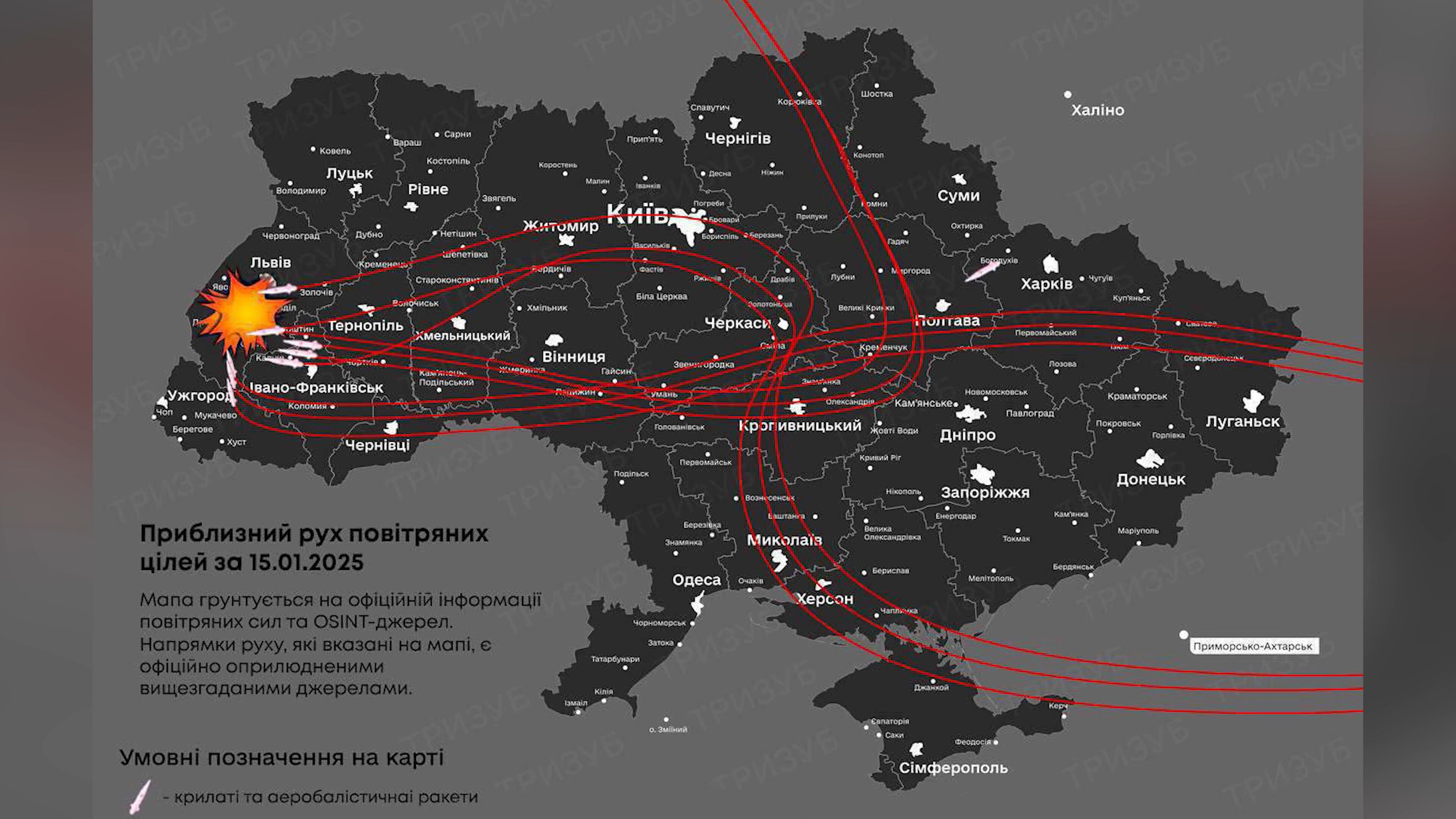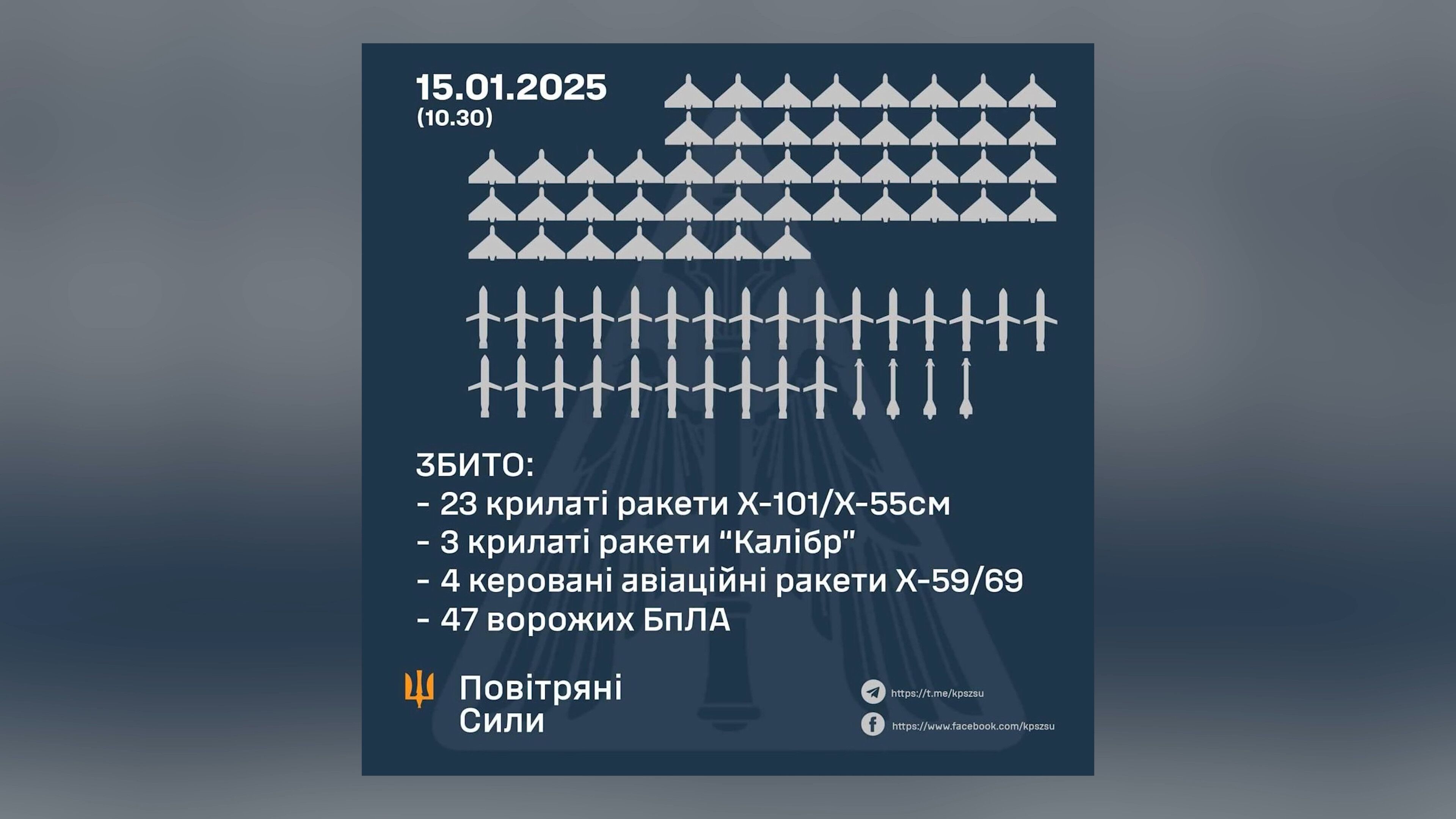 Von den 117 gegen Infrastruktur Ziele in der Westukraine abgefeuerten Drohnen, Raketen und Marschflugkörpern
