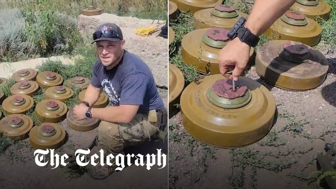 Amerikanischer Freiwilliger in der Ukraine zeigt die Gefahr auf, Landminen auf landwirtschaftlichen Feldern zu räumen