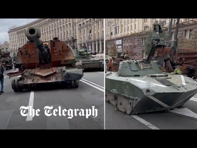 Die Ukraine verspottet Moskau mit einer Parade zerstörter russischer Panzer