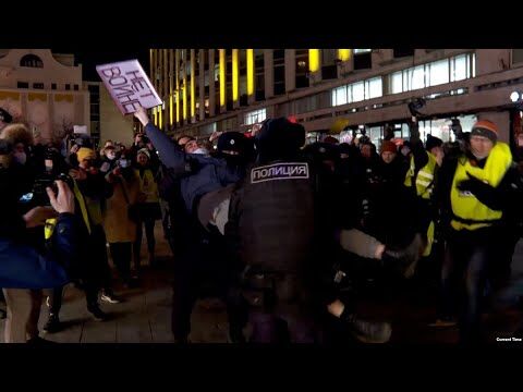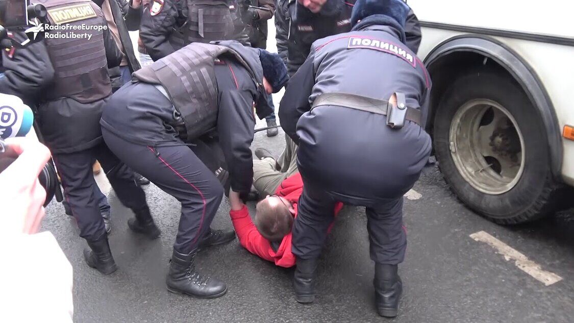 Video zeigt RFE/RL-Journalist bei Moskauer Friedenskundgebung festgenommen