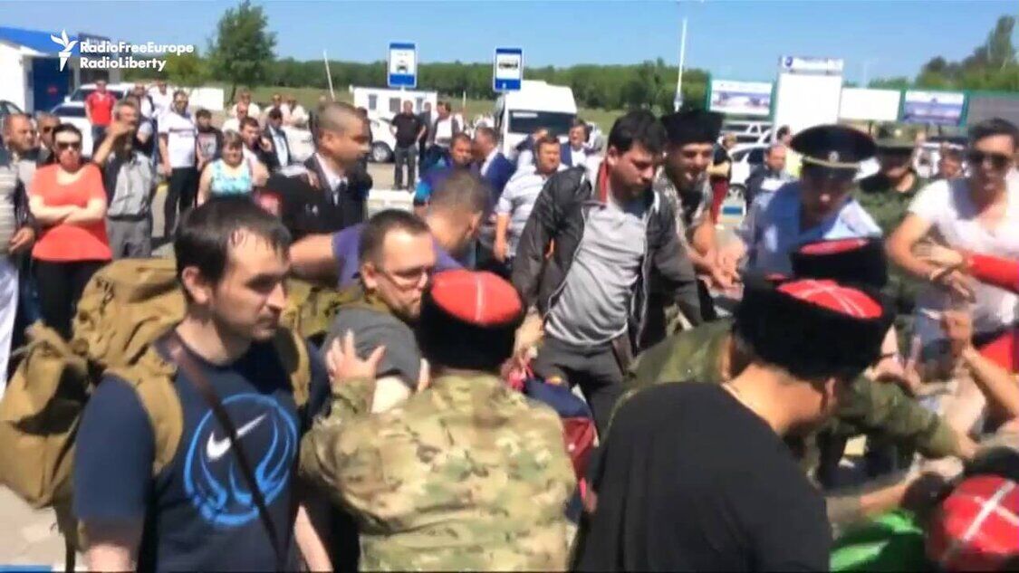 Kosaken attackieren russischen Oppositionsführer und seine Anhänger