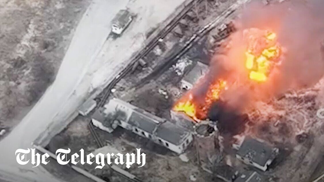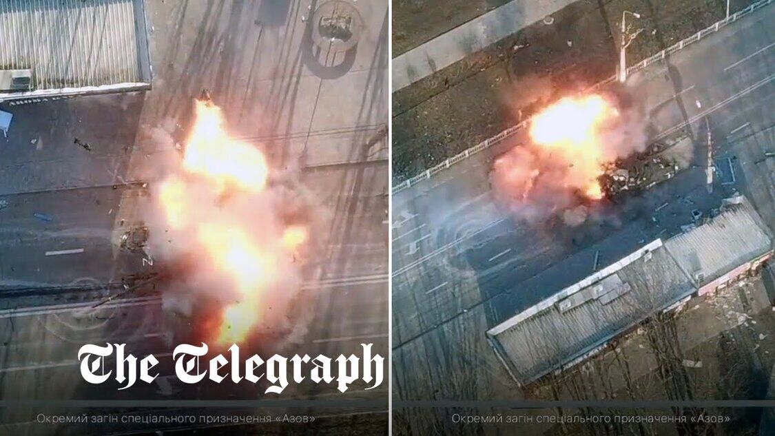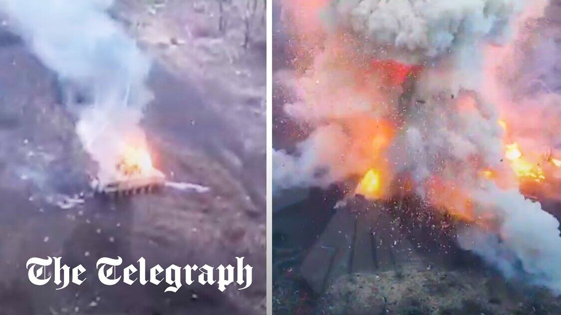 Russisches Panzerfahrzeug explodiert, nachdem es von einer ukrainischen Drohne getroffen wurde