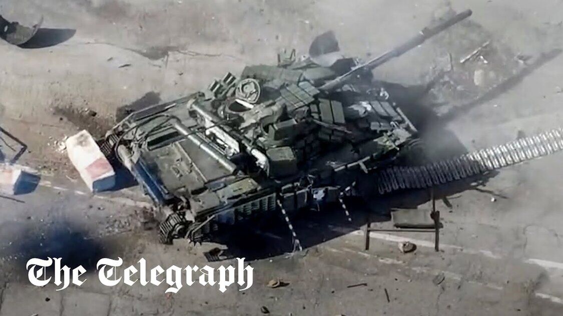 Das Asowsche Regiment zerstört einen russischen Panzer in Mariupol