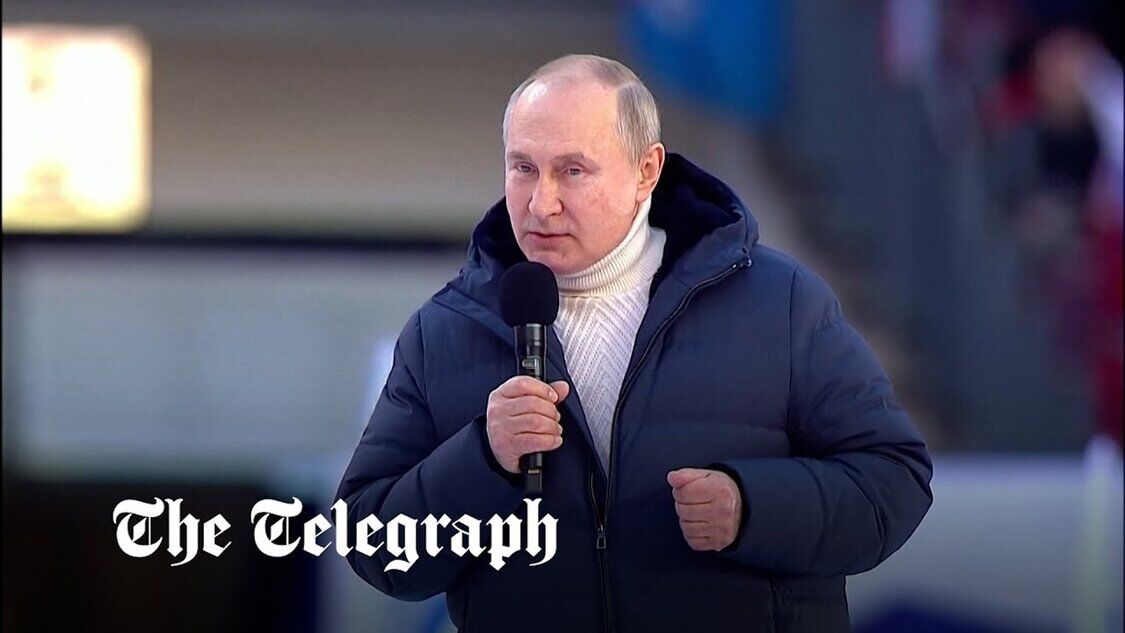 Das russische Staatsfernsehen unterbrach Putins Rede, bevor er von der Bühne humpelte