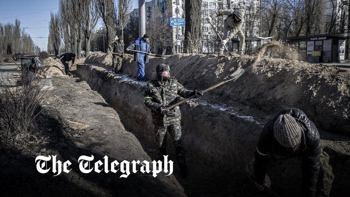Während der russische Konvoi immer näher rückt, legen die Ukrainer Schützengräben um Kiew aus