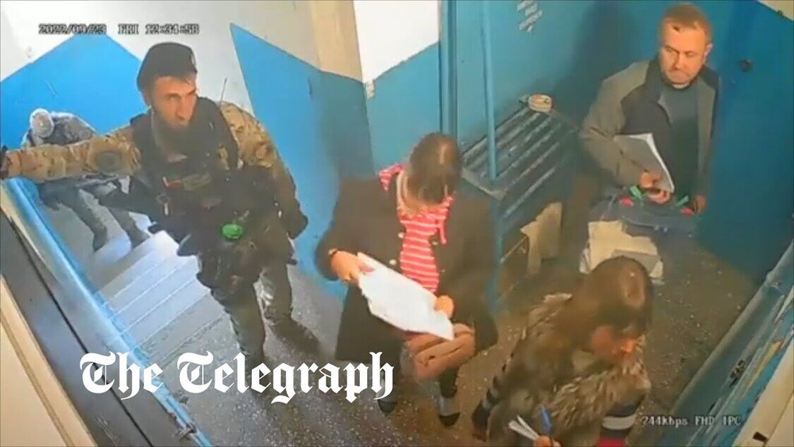 Bewaffnete russische Soldaten und Mitglieder der Wahlkommission gehen von Tür zu Tür, um Stimmen für das Referendum einzusammeln