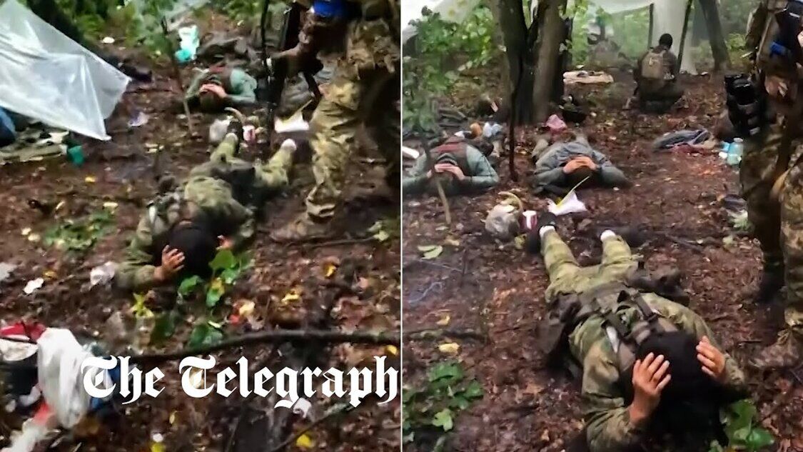 Moment, in dem sich russische Truppen in Isjum den ukrainischen Soldaten ergeben