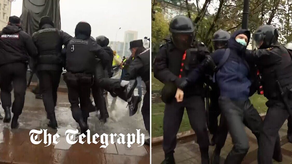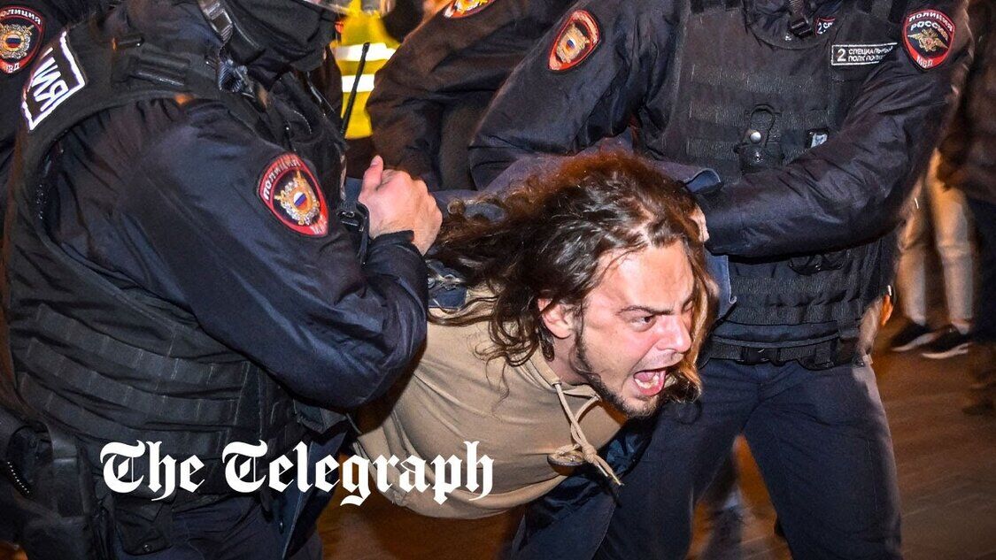 Gewaltsame Festnahmen in RusslandDemonstranten demonstrieren gegen Putins Kriegsmobilisierung