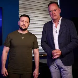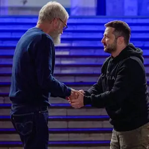 David Letterman reist nach Kiew in der Ukraine, um vor einem kleinen Live-Publikum ein ausführliches Gespräch mit Präsident Wolodymyr Selenskyj zu führen.