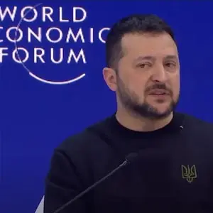 Selenskyj nimmt an einer kurzen Frage-und-Antwort-Runde beim Weltwirtschaftsforum in Davos, Schweiz, teil
